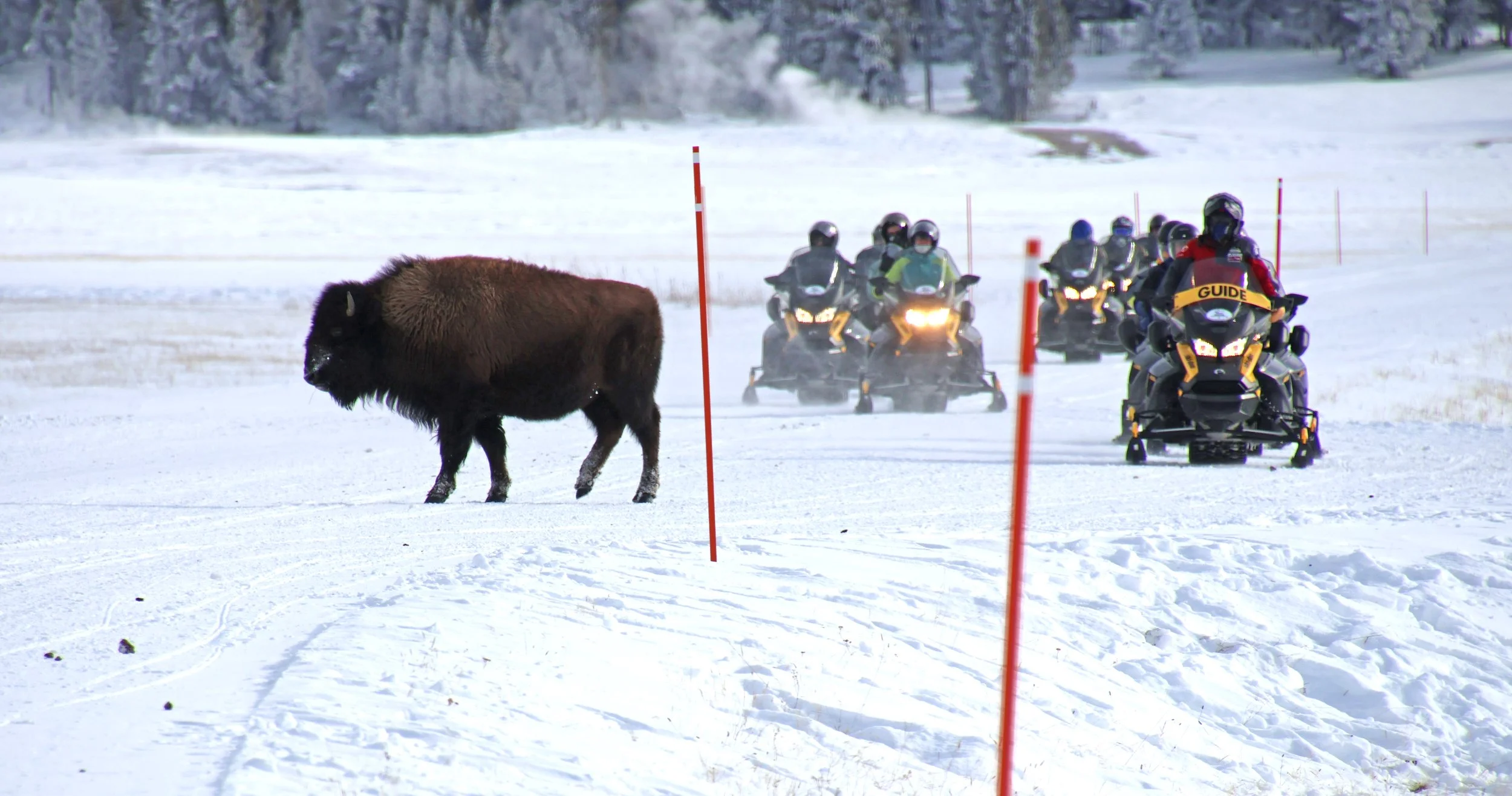 [44] Snow machine tour zooming by Yellowstone National Park, WY