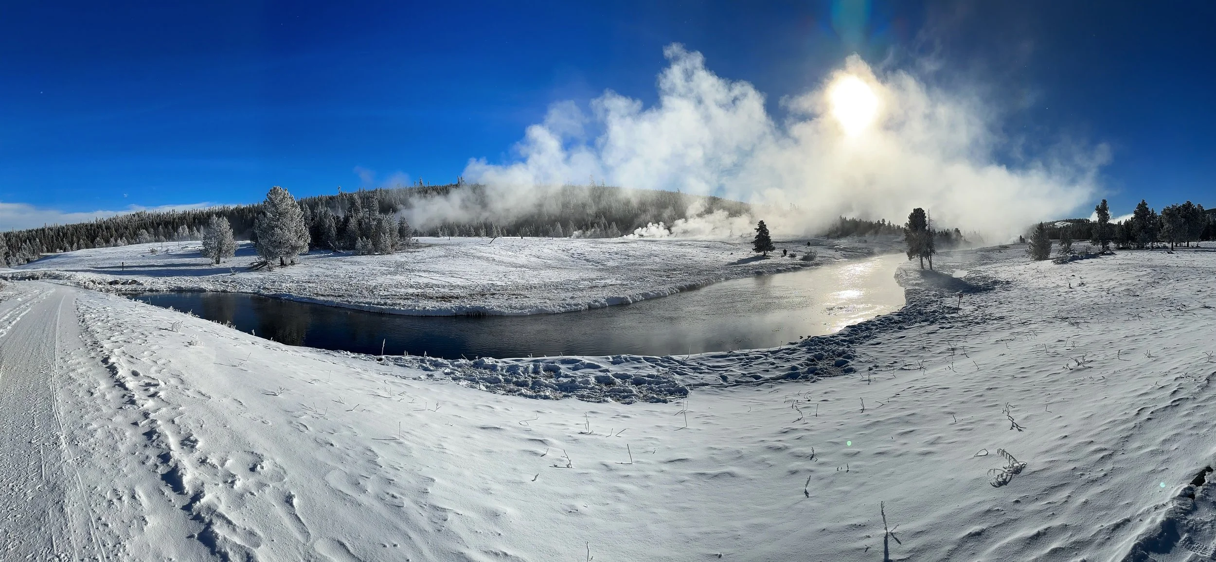 With temperatures ranging from a brisk +40°F to a bone-chilling -25°F, the experience was nothing short of exhilarating. Bundled up and armed with our cameras, we boarded a snow coach to access areas of the park that are closed to the general public during the winter months. This unique mode of travel gave us an intimate, up-close view of Yellowstone’s raw, untouched beauty.