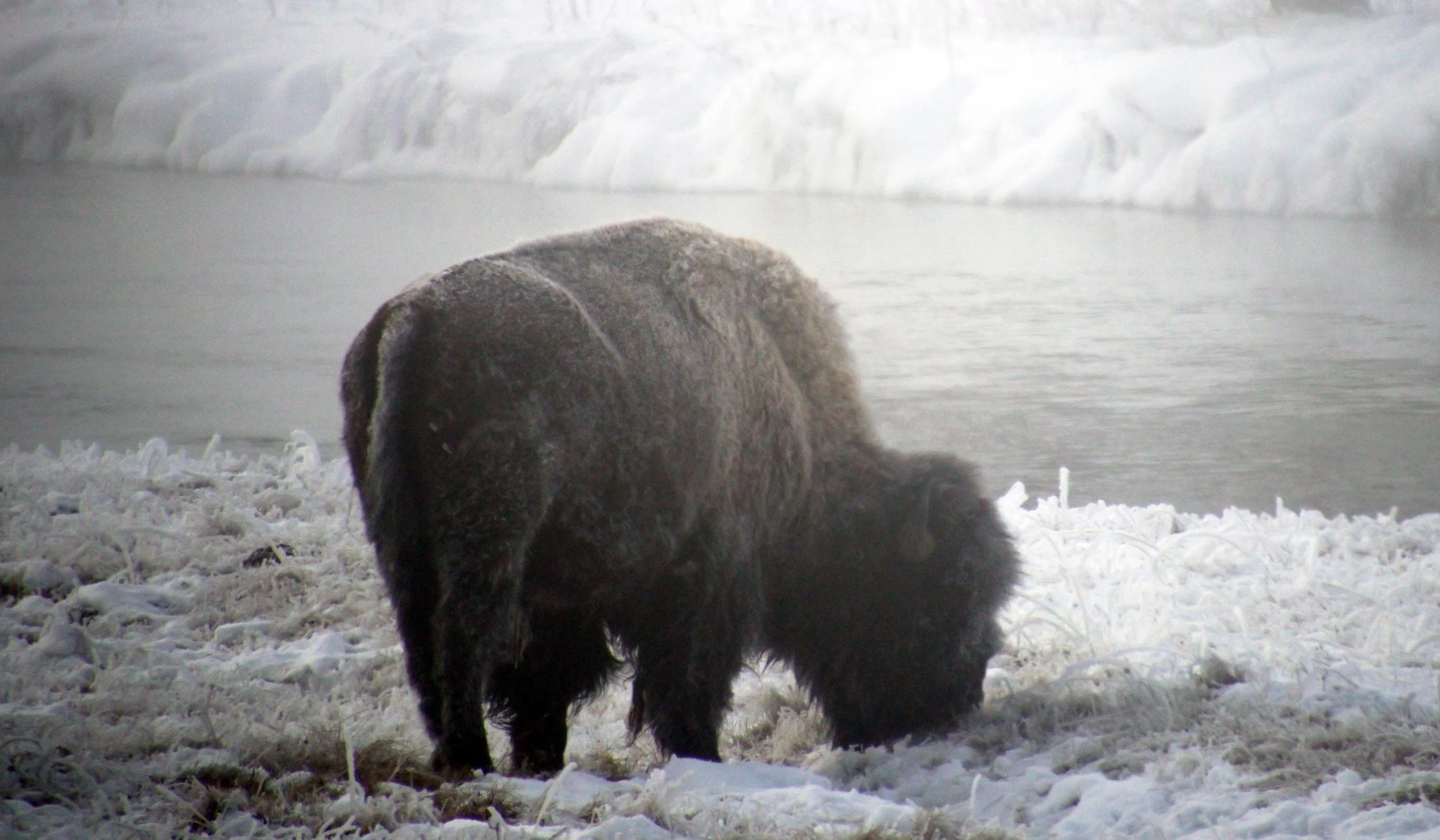 Steam rose dramatically from geothermal features against a backdrop of snow-covered landscapes. Bison trudged through deep drifts, their breath visible in the frigid air. All the animals reminded us we were deep in wild country, where nature rules in its most majestic form.